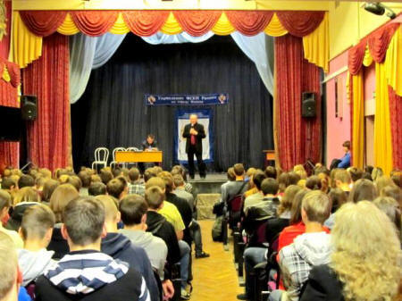 Председатель НСНБР А.Г.Огнивцев- ведущий противонаркотического цикла Открытых уроков против наркотиков. Фото - подполковник полиции А.А.Глахов (Служба по САО УФСКН России по Москве).